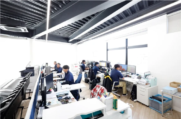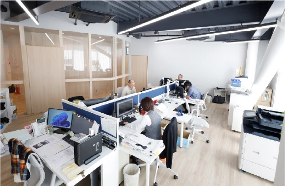 デスクを向かい合わせに配置しており、チーム内でのコミュニケーションが取りやすい環境になっています。