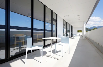 椅子とテーブルが設けられており、気分転換できる場所です。