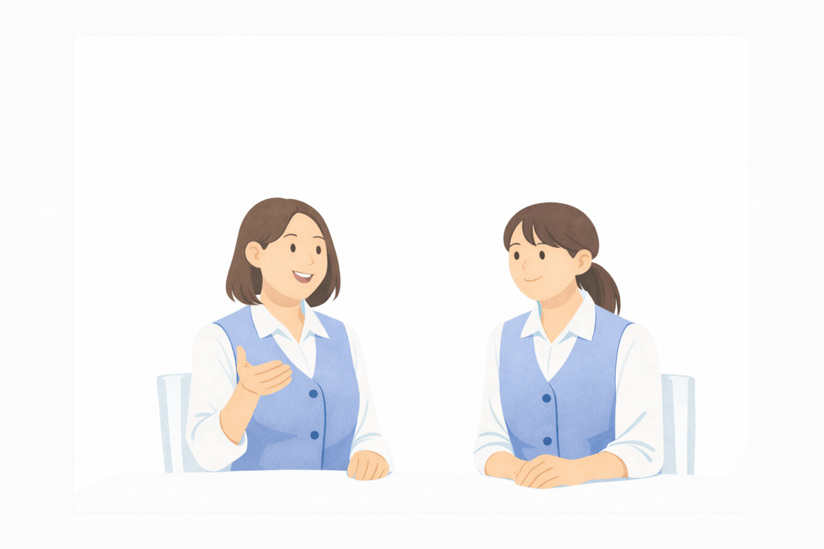 私もハローワーク経由だった!前職は全く別の業種だったから不安もあったけど、地域に貢献できる仕事がしたいと思って挑戦したの。面接の時に感じた社員の皆さんの雰囲気の良さが、入社の決め手だったなあ。